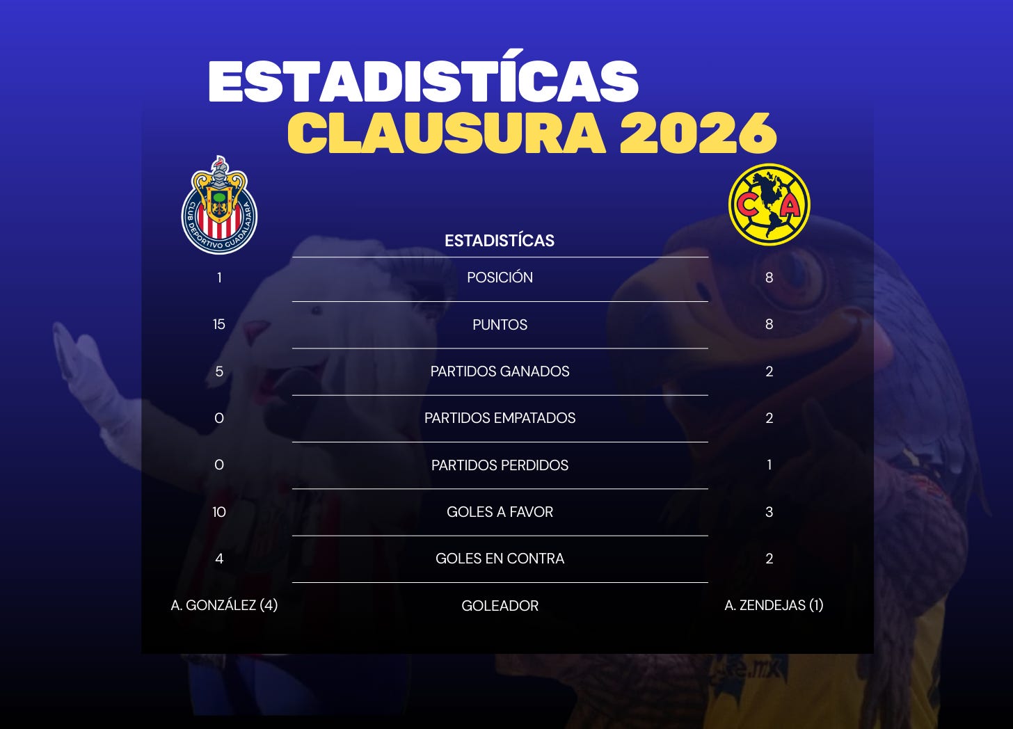América llega ya dentro de los 8 mejores de la tabla, mientras que Guadalajara es líder y trae a su gente, que ve eso poco, como locos.