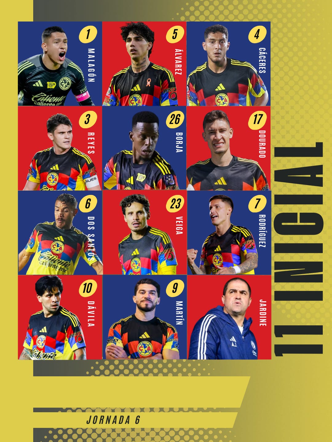 En la portería estaría Luis Malagón, con Kevin Álvarez y Cristian Borja por las bandas, con Sebastián Cáceres e Israel Reyes como centrales.