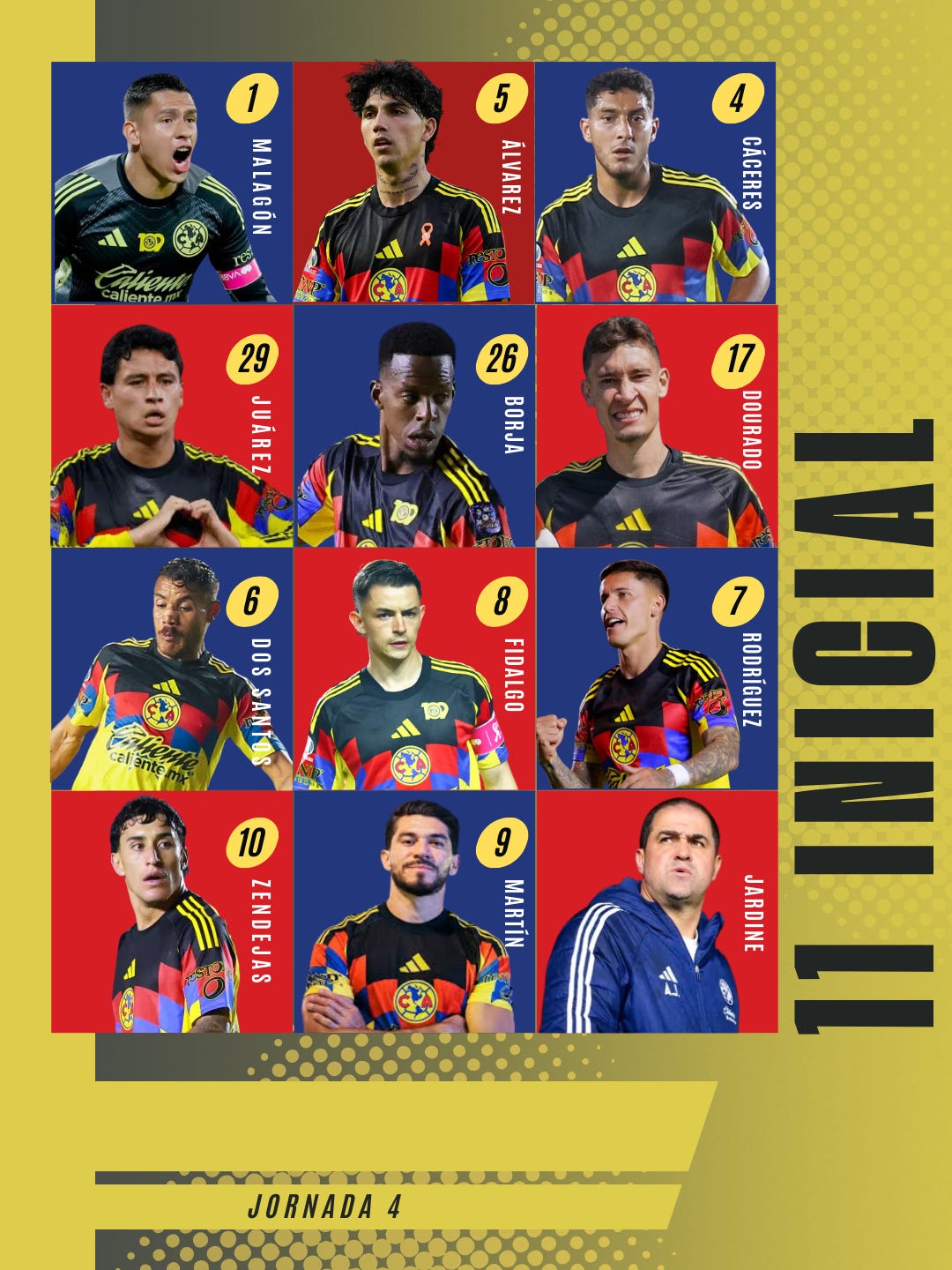 Es así, que veríamos en la portería a Luis Malagón, mientras que en la lateral derecha estaría Kevin Álvarez, con Cristian Borja por izquierda, teniendo en la central a Ramón Juárez en lugar de Reyes, acompañando a Sebastián Cáceres.