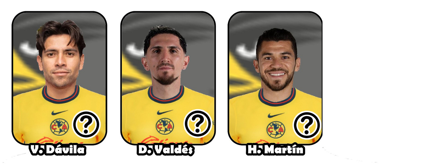 Con el América ya es costumbre no saber quién está bien y quién no. Hasta el lunes por la tarde, el reporte era que Dávila y Diego Valdés podrían estar listos para Liguilla mientras que Henry será hasta el último momento. Así que podríamos tener ausentes, o podríamos tener plantel completo. Jugando a la segura, mantendremos a Dávila, Valdés y Henry como dudas.
