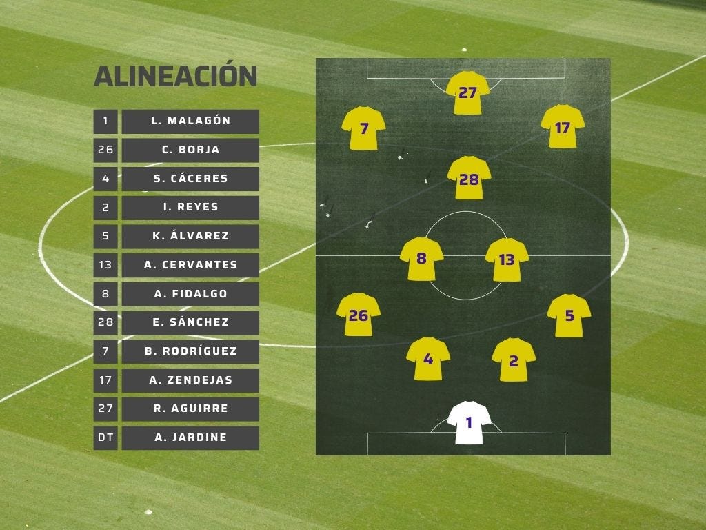 Adelante, un buen tridente con Brian por izquierda, Zendejas por derecha y el temible “Búfalo” Aguirre como punta.