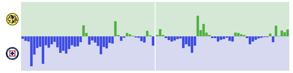 Cruz Azul intentó más en el primer tiempo, pero sin generar nada de peligro. Mientras que América en el segundo fue más incisivo.