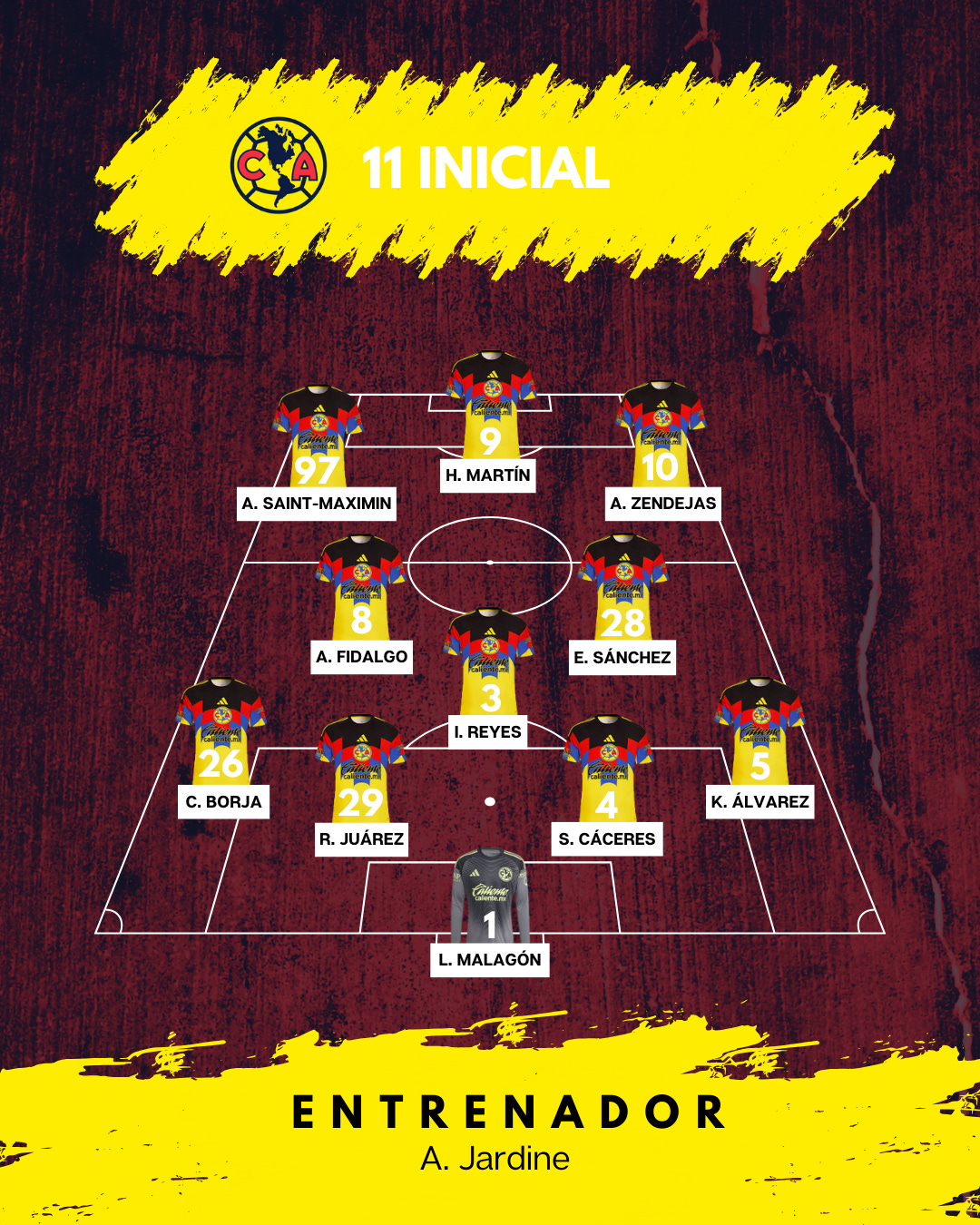 Por ello, veríamos en la portería a Luis Ángel Malagón. En la central, se espera que ya regrese Ramón Juárez y juegue junto con Sebastián Cáceres. En las bandas, no hay más, Kevin Álvarez por derecha y Cristian Borja por izquierda.