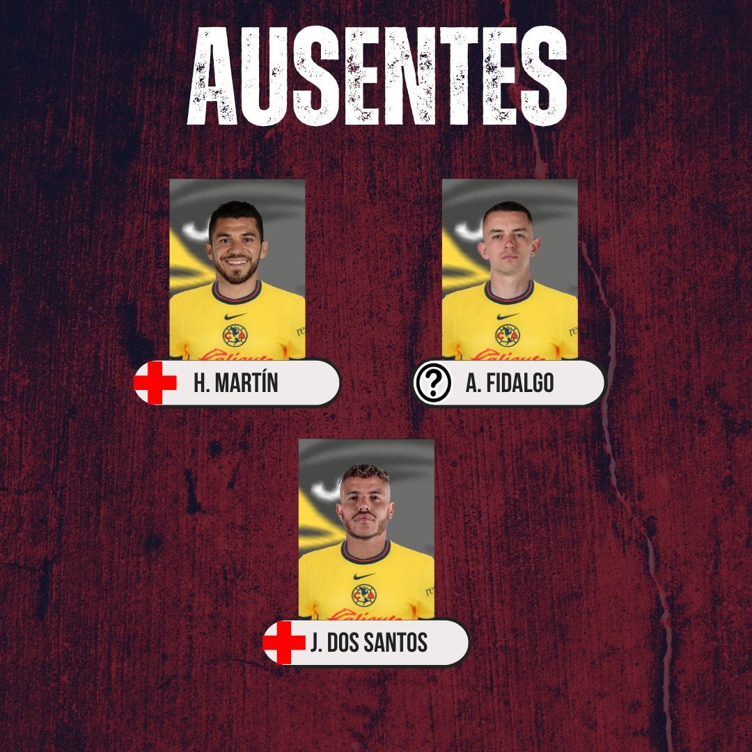 Tras la publicación de este previo, el América anunció que Jonathan Dos Santos también está fuera de combate.