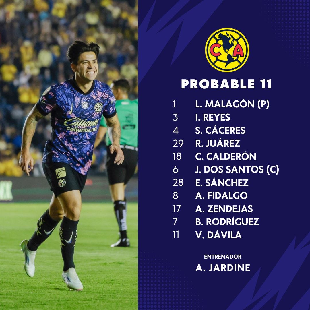 En el medio campo tendríamos a Jonathan dos Santos en la contención, Erick Sánchez ligeramente por derecha y Álvaro Fidalgo con mayor libertad para orquestar los avances americanistas. En la zona de ataque repetirían el tridente conformado por el extraordinario Alejandro Zendejas por derecha, el rayito uruguayo Brian Rodríguez y la sensación en el eje de ataque Víctor Dávila.