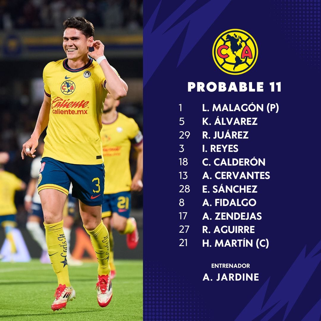 En la portería veríamos a Luis Malagón, mientras que en la central estarían Israel Reyes y Ramón Juárez. En las laterales, Kevin Álvarez y Cristian Calderón.