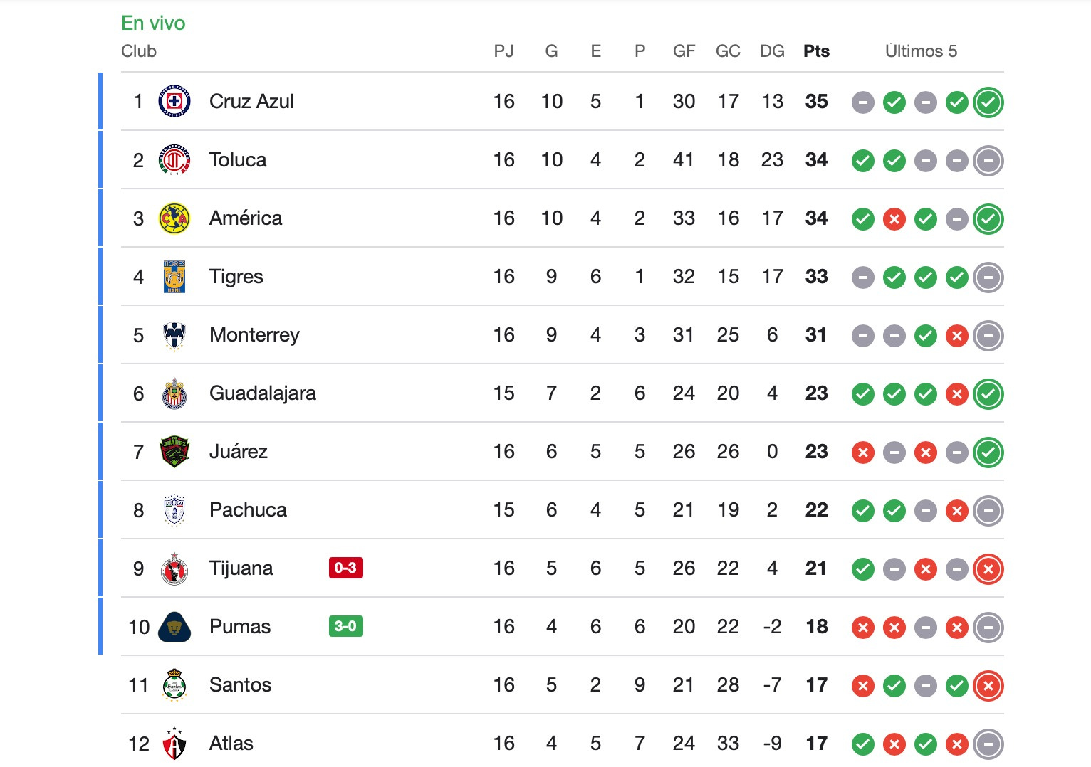 De no haber perdido puntos contra Mazatlán, América sería líder de la competencia.