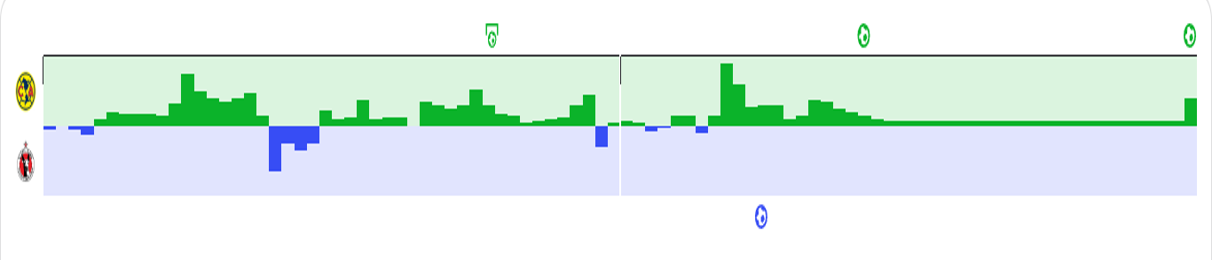 América dominó la totalidad del partido. Aunque la suspensión del partido hizo difícil el seguimiento en la segunda mitad.