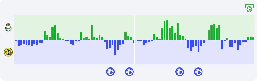 🇲🇽 Erick Sánchez (45+2’) | 0-2: Javairô se acordó de los grandes servicios que es capaz de brindar. Tras una serie de amagues por el costado derecho del área, mandó centro de zurda a Chiquito Sánchez, quien suspendido en el aire como temible goleador, colocó el segundo clavo al ataúd lagunero justo antes del descanso con sólido frentazo.